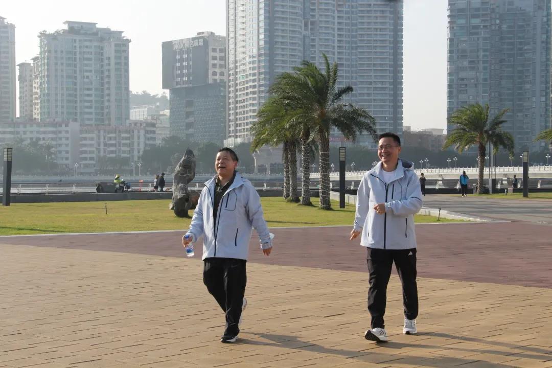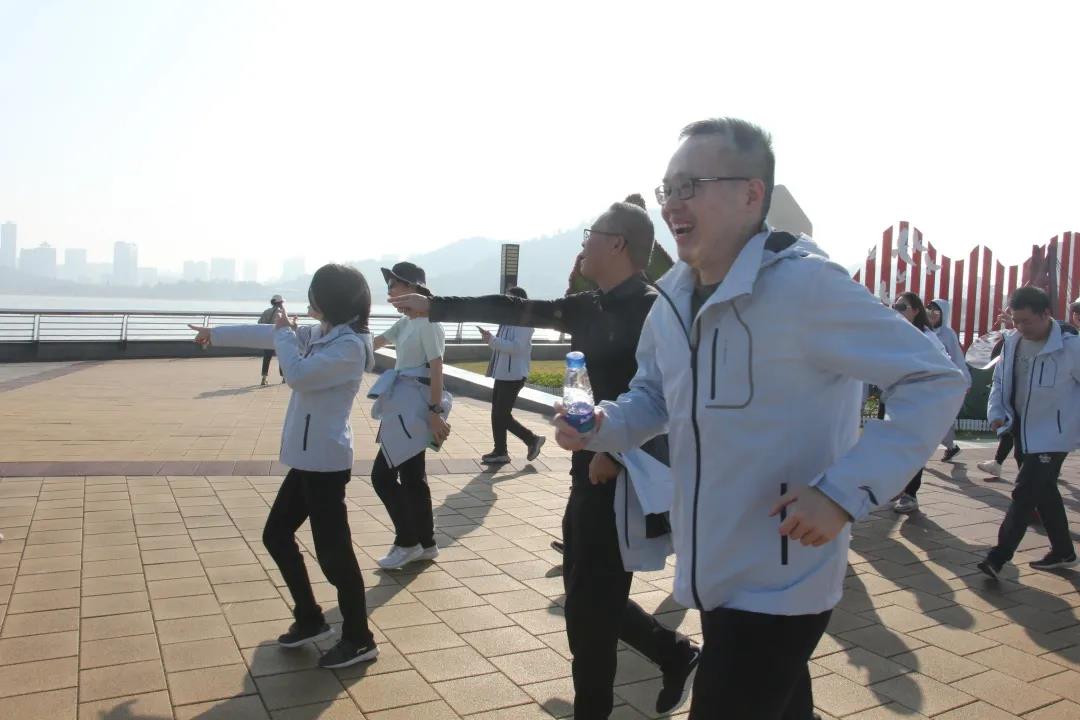 領(lǐng)導(dǎo)與職工一起欣賞沿途風(fēng)景,交流思想工作,暢談健康生活,在歡聲笑語(yǔ)間闊步向前。