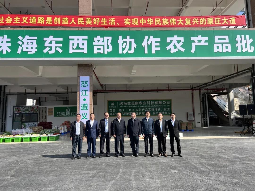 12月10日,珠海東西部協(xié)作農(nóng)產(chǎn)品批發(fā)中心揭牌儀式在農(nóng)控物流園舉行,廣東省農(nóng)業(yè)農(nóng)村廳二級巡視員宋宗約,珠海市市委常委、統(tǒng)戰(zhàn)部部長郭才武,珠海市政府副秘書長、粵黔協(xié)作工作隊遵義工作組組長趙亮,珠海市農(nóng)業(yè)農(nóng)村局黨組成員、副局長肖勁松,以及農(nóng)控集團黨委書記、董事長張凡出席儀式。